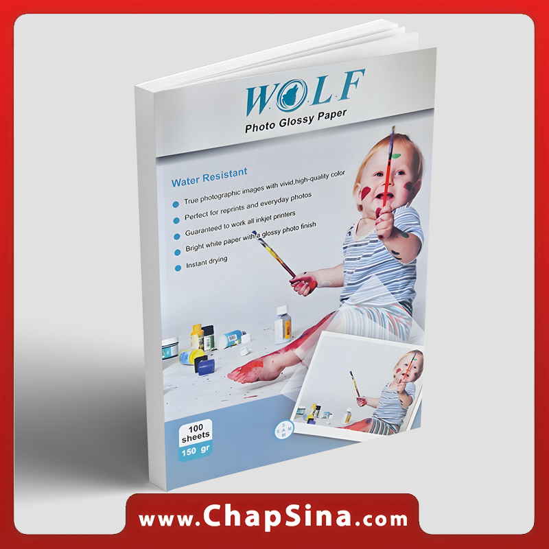 - کاغذ فتو گلاسه ۱۵۰ گرم ولف سایز A4 در بسته 100 برگی میباشد که مناسب برای چاپ عکس توسط پرینتر های جوهر افشان است. این کاغذ در ابعاد ۲۹۷× ۴۲۰ میلی متر تولید و به بازار عرضه میشود. این کاغذ همچنین از وزن مناسب و سبکی برخوردار میباشد. به گونه ای که وزن آن معادل ۱۸۰ گرم است.